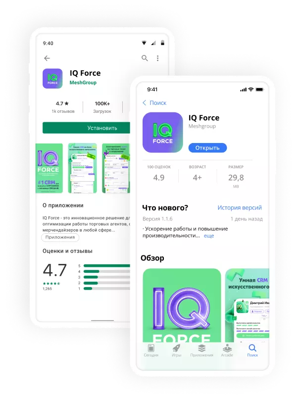 IQ Force — инновационное решение для оптимизации работы торговых агентов, супервайзеров, мерчендайзеров и любых выездных сотрудников, объединяющее модульную CRM-систему, настраивающуюся под конкретные бизнес-процессы, и умные инструменты работы с маршрутами на основе Big Data и нейронных сетей AI.