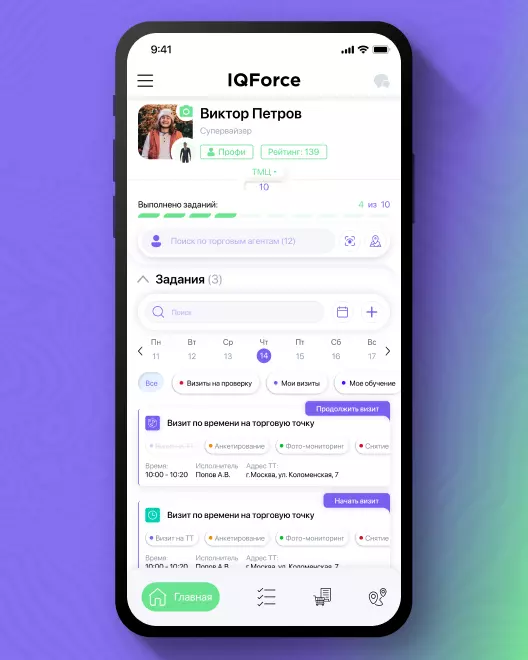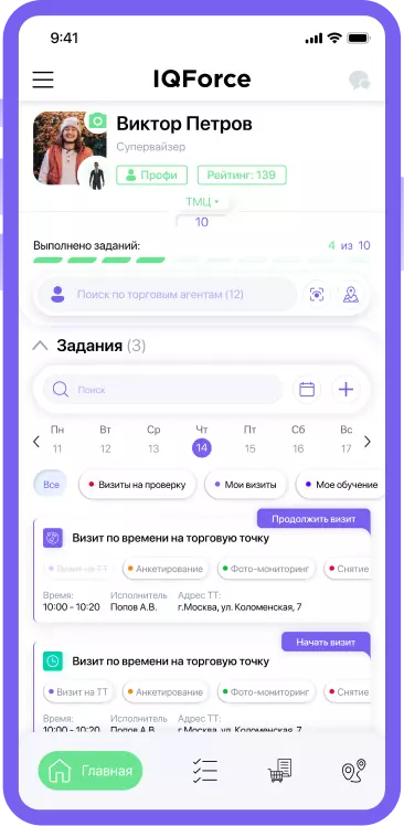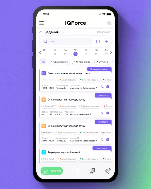 Благодаря работе в единой экосистема IQ Force + IQ Retail торговые точки видят действия торгового агента, запланированные в ближайший визит: оформление заказа, анкетирование, снятие остатков, обучение, мерчендайзинг и т. д., и могут самостоятельно выполнить эти задания за дополнительное вознаграждение.
