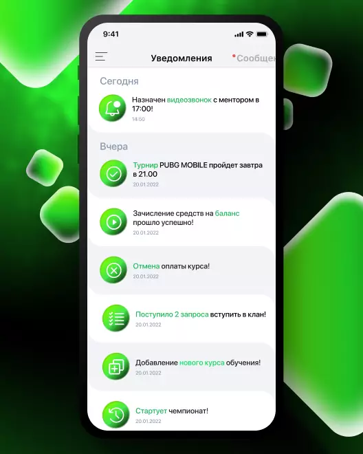 • Гибкая система настройки пуш-уведомлений по любым процессам: добавление нового курса обучения, проверка домашнего задания, старт нового турнира и т. д.