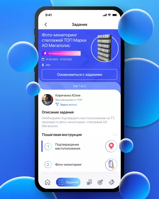 Умная система аналитики составляет подробные отчёты по каждому из сотрудников: сколько визитов из запланированных было выполнено, сколько времени было затрачено на перемещения из одной точки в другую, все ли необходимые действия на точке зафиксированы в чек-листах, в каких моментах происходят нарушения стандартов компании.