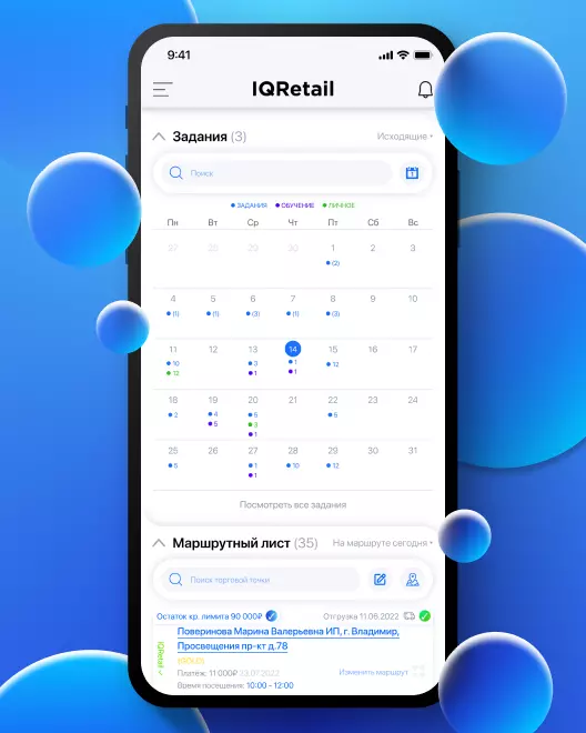 Благодаря встроенному в телефон модулю на основе геолокации IQ Retail позволяет зафиксировать приход торгового агента в торговую точку, а также рассчитать продолжительность визита и затраченное на дорогу время. Настраиваемая система чек-листов контролирует и приводит работу торговых агентов к единому стандарту, не допуская пропуска действий, обязательных для выполнения во время визита: анкетирование, промо новинок, мерчендайзинг и т. д.